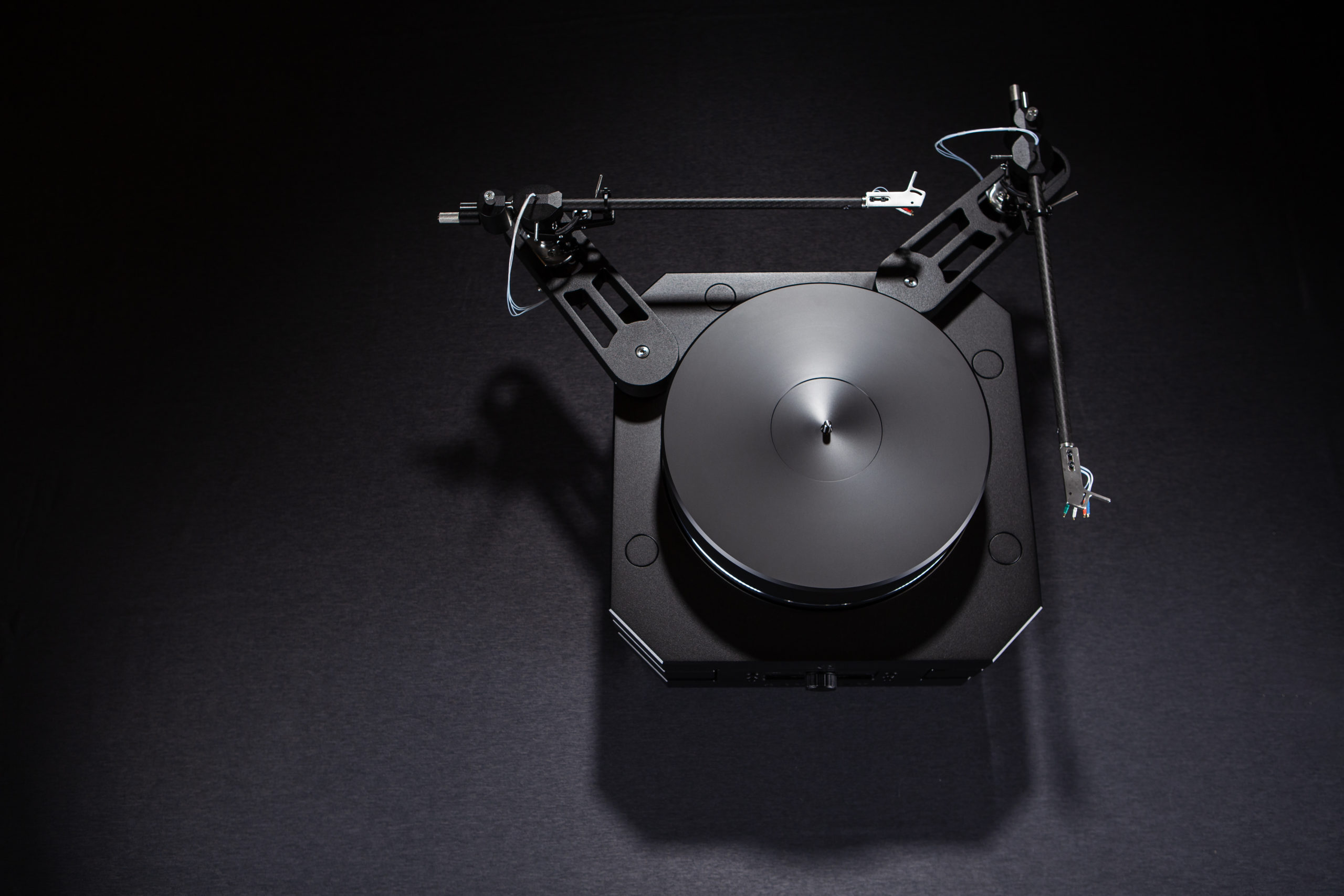 System trzech talerzy (Delrin i stal nierdzewna) o łącznej masie 17 kg zapewnia wyjątkową stabilność. Precyzyjne łożysko z kulką z węglika spiekanego i wałem 15 mm pracuje w tulei z aluminium i PEEK, smarowanej olejem o wysokiej lepkości.